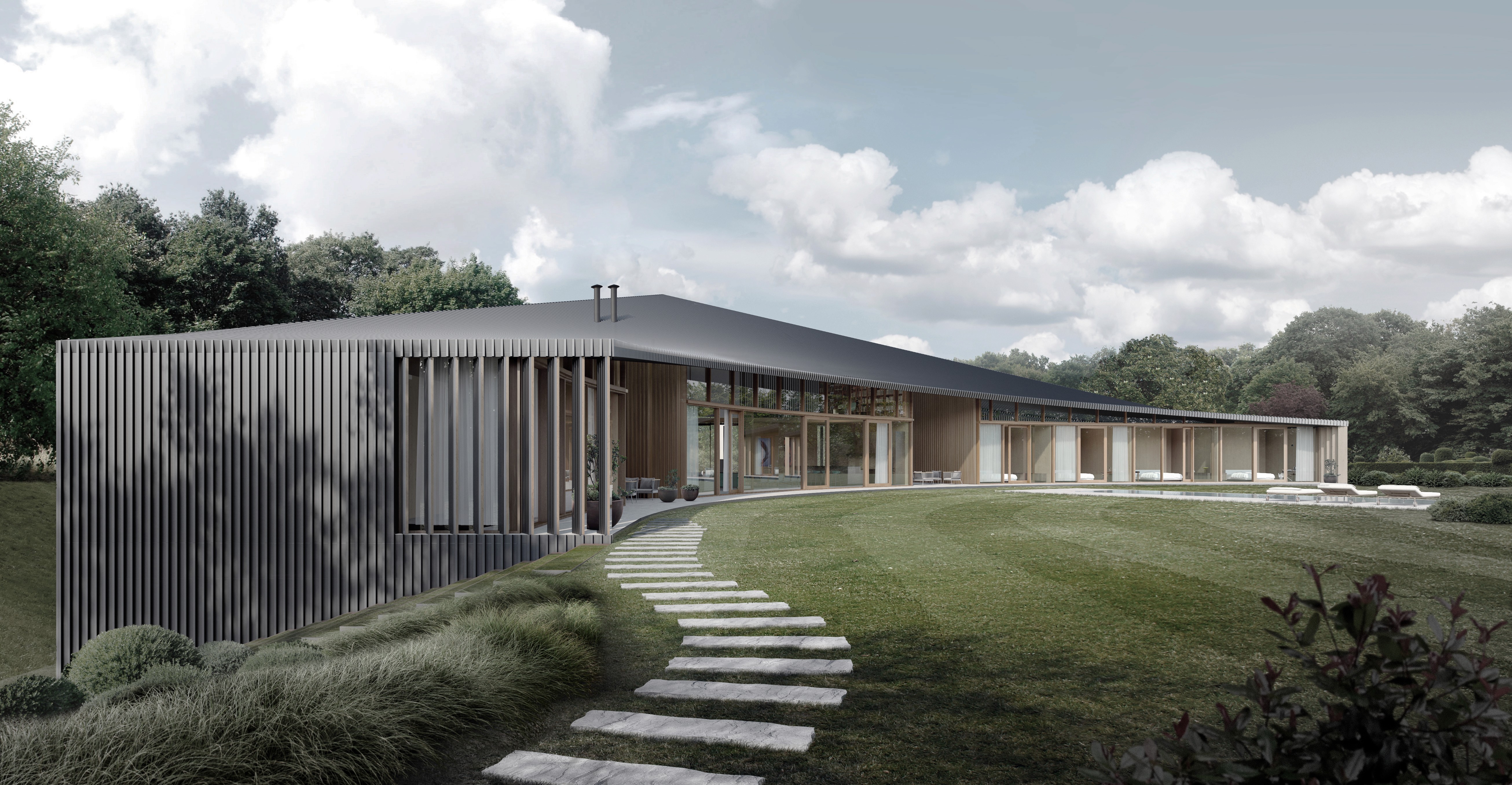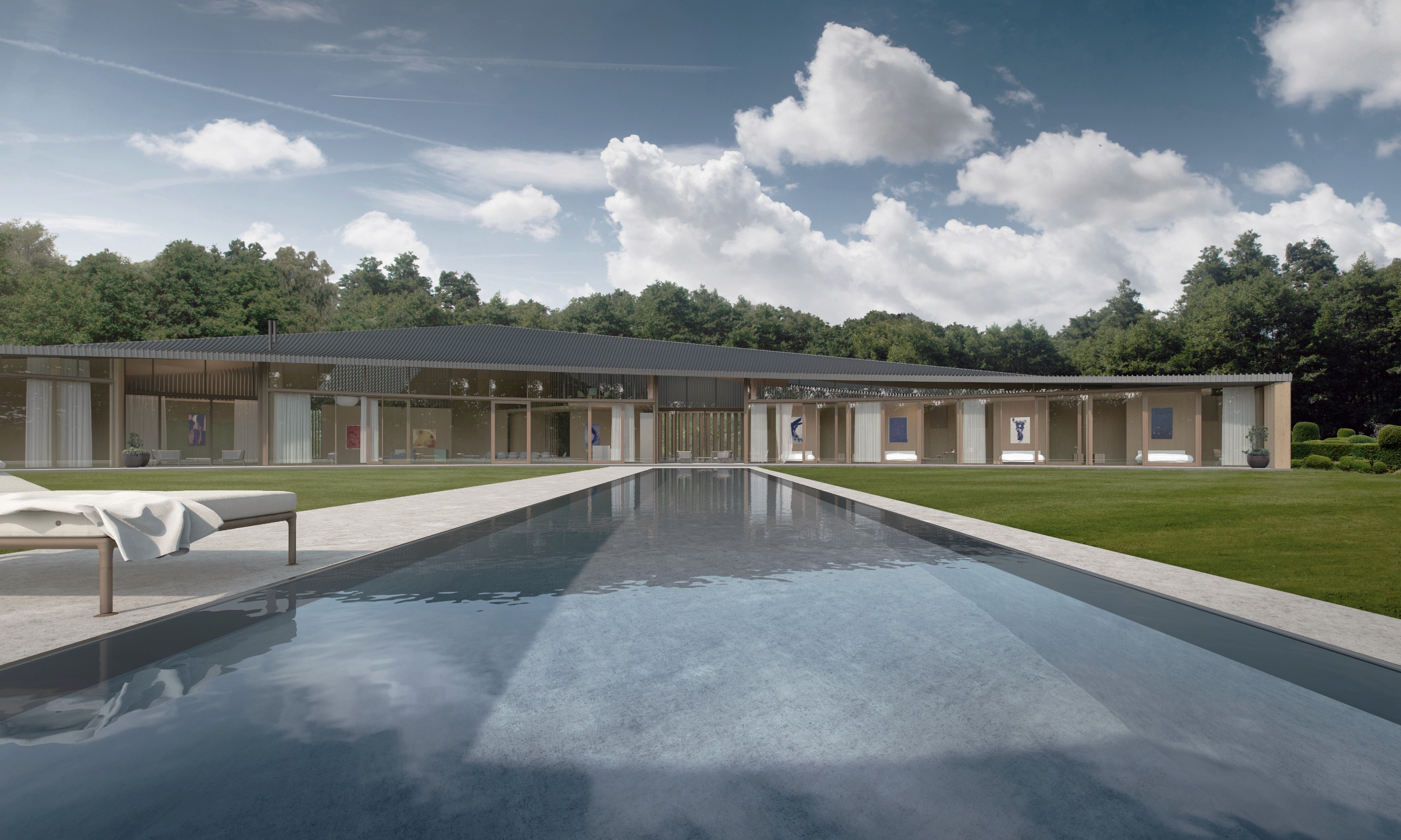 Terraces and large glazed sliders extend every south-facing room out to the landscape and the 20m pool.