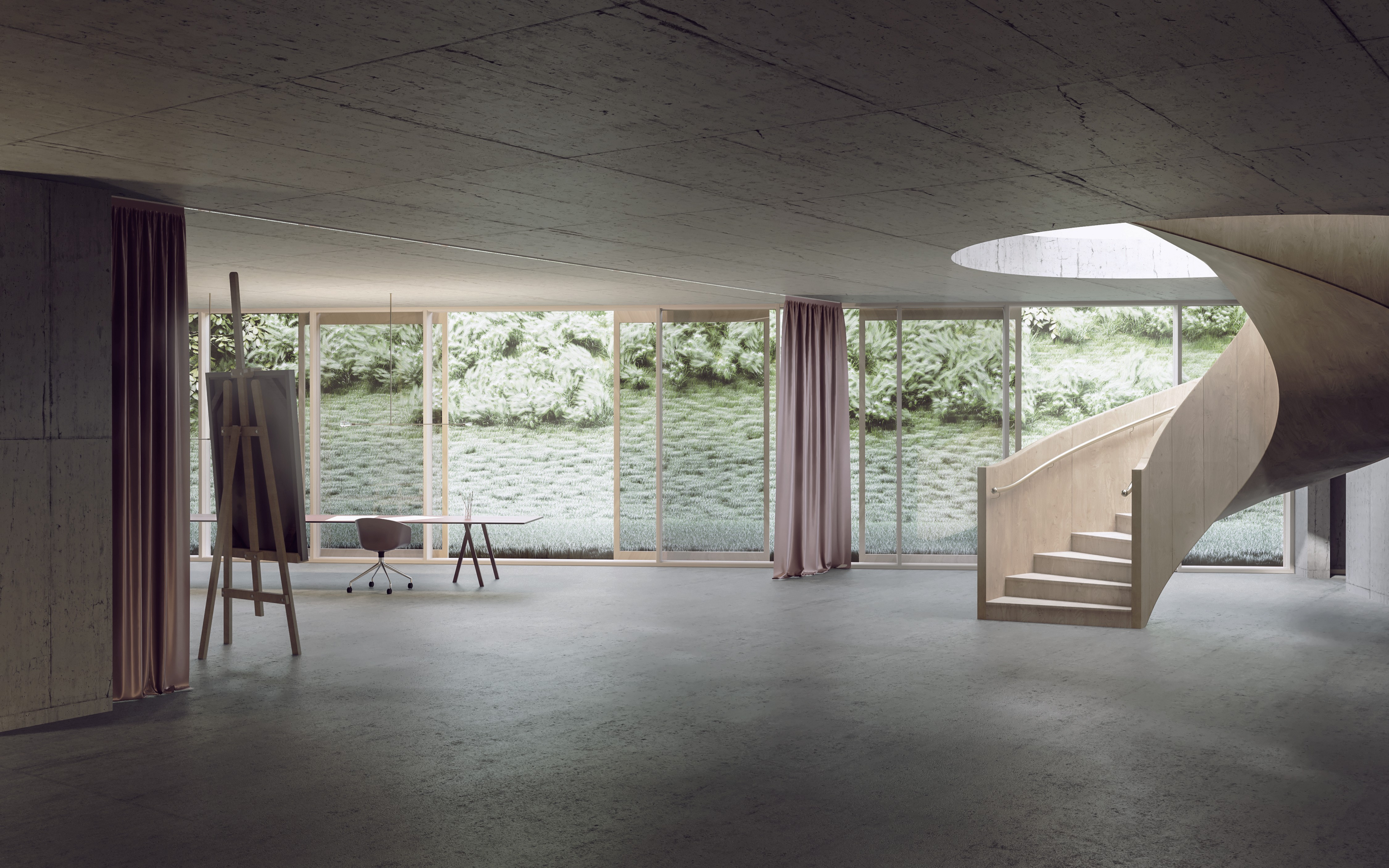 Warm Douglas fir, concrete floors with in-floor heating, and small brass accents keep the interiors calm, tactile, and quietly luminous.