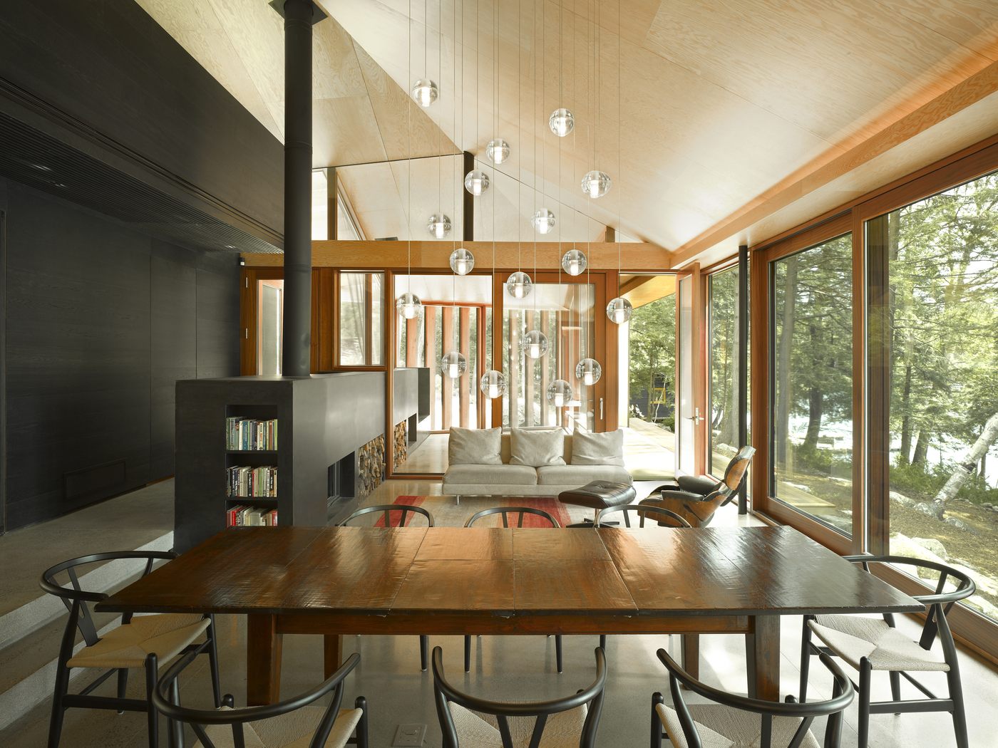 Stepped with the grade, each room meets a different slice of lake, canopy, or woods, letting light and breeze move gently through the day.